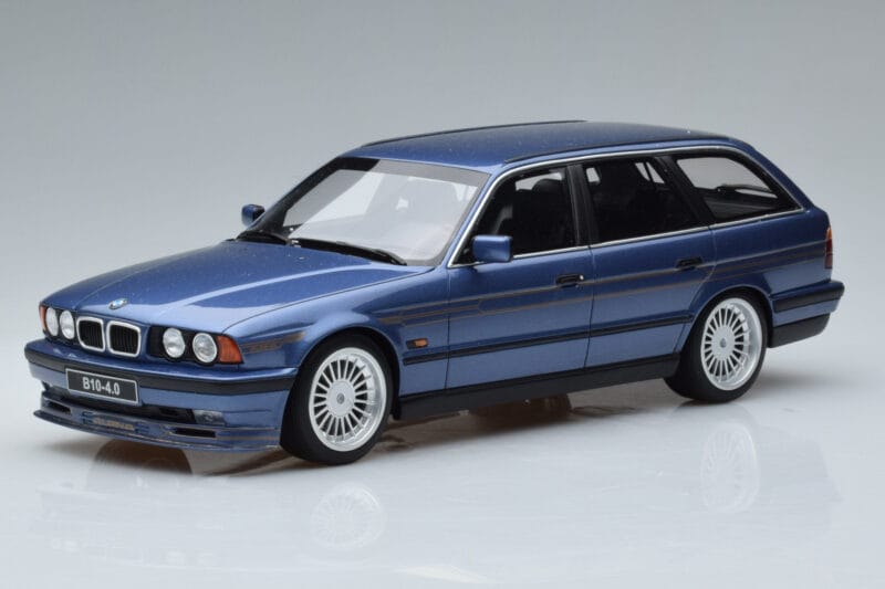 The BMW Alpina B10 E34 4.0 Touring Blå Otto 1:18 is crafted from Resin. High-quality resin with hand-painted details and limited production runs. Resin models offer exceptional detail and are prized by serious collectors for their craftsmanship.