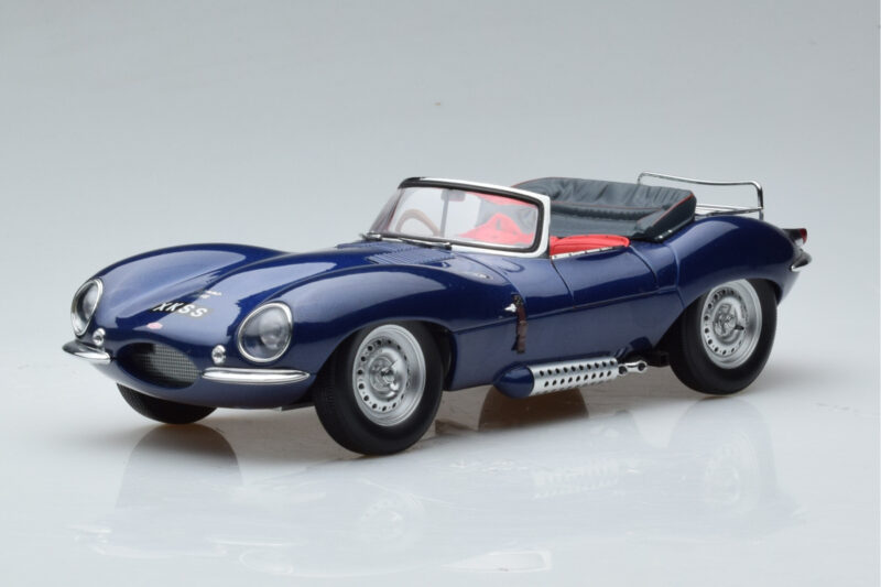 The Jaguar XKSS Blå AUTOart 1:18 is crafted from Metal. Die-cast zinc alloy body with detailed plastic parts, rubber tires, and high-quality paint finish. Die-cast models are known for their weight, durability, and realistic feel.