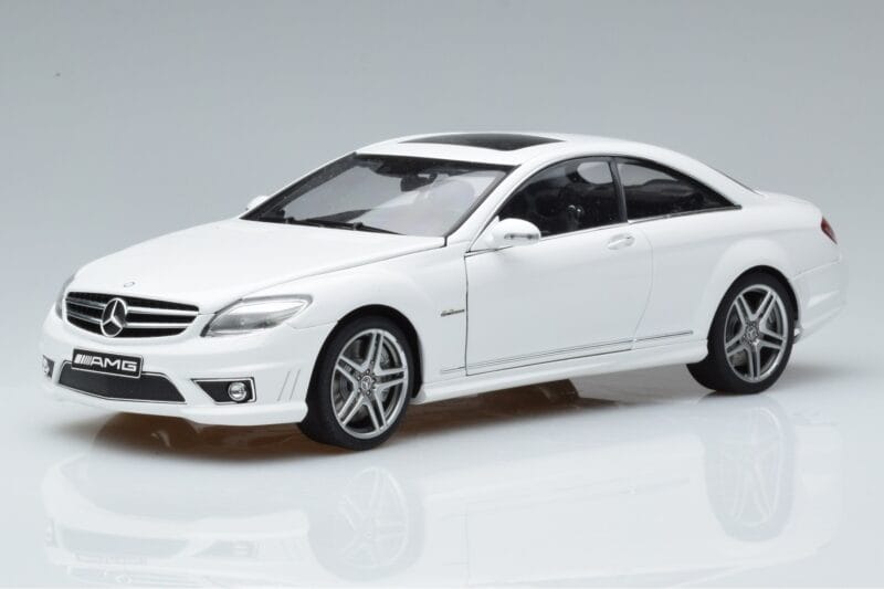 The Mercedes CL63 AMG C216 Hvid AUTOart 1:18 is crafted from Metal. Die-cast zinc alloy body with detailed plastic parts, rubber tires, and high-quality paint finish. Die-cast models are known for their weight, durability, and realistic feel.
