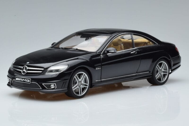 The Mercedes CL63 AMG C216 Sort AUTOart 1:18 is crafted from Metal. Die-cast zinc alloy body with detailed plastic parts, rubber tires, and high-quality paint finish. Die-cast models are known for their weight, durability, and realistic feel.