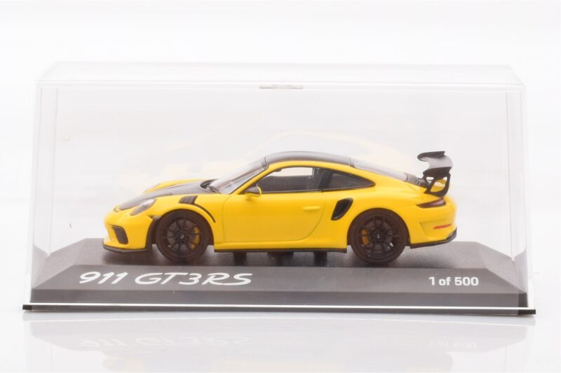 A 1:43 scale model measures approximately 10-12 cm (approximately 4-5 inches). The Porsche 911 991.2 GT3 RS Gul Minichamps 1:43 is perfect for display in a glass cabinet or on a shelf.