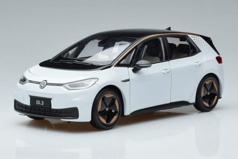 The Volkswagen ID.3 Hvid FAW 1:18 is crafted from Metal. Die-cast zinc alloy body with detailed plastic parts, rubber tires, and high-quality paint finish. Die-cast models are known for their weight, durability, and realistic feel.