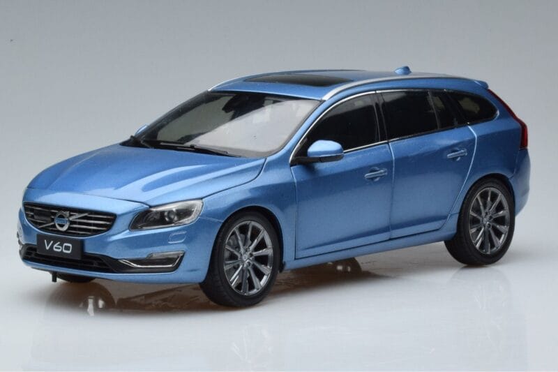 The Volvo V60 D3 Power Blå FAW 1:18 is crafted from Metal. Die-cast zinc alloy body with detailed plastic parts, rubber tires, and high-quality paint finish. Die-cast models are known for their weight, durability, and realistic feel.